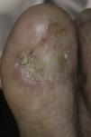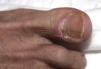 An 87-year-old man with no relevant medical history sought care for an asymptomatic 2-month-old lesion on the first toe of his right foot. Paronychia was first suspected and a topical antibiotic was prescribed. When the lesion did not respond, a biopsy was performed to rule out Bowen disease.
