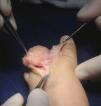 We report the case of a 5-month-old boy with a soft, recalcitrant mass on his middle left toe (Fig. 1). The mass had appeared in the first month of life and had exhibited fast, progressive growth. Soft-tissue ultrasound showed a solid, circumscribed lesion with a vascular appearance. Contrast magnetic resonance imaging (MRI) showed a well-defined solid mass with a vascular appearance consistent with a hemangioma or a low-flow vascular malformation.