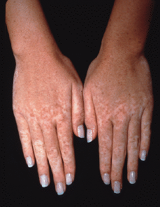 FIG. 1.--Máculas hipo e hiperpigmentadas en el dorso de las manos.
