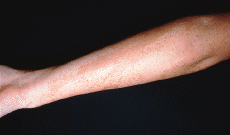 FIG. 3.--Lesiones hiperpigmentadas, que se extendían desde las manos, que confluían en una gran mancha en el antebrazo.