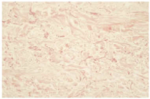 Fig. 4.--Tinción de orceína de una lesión del caso 2 donde se observan en dermis reticular fibras de reticulina engrosadas y fragmentadas.