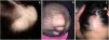 Caso clínico 2Examinamos en nuestro hospital a una paciente de 3 meses de edad, que presentaba placas alopécicas congénitas en el cuero cabelludo. La de mayor tamaño era una lesión redonda de aproximadamente 3cm de diámetro, de color similar a la piel, blanda, con reducción de la densidad pilosa. Las otras 2 lesiones, adyacentes a la más grande, presentaban formas redondeadas más pequeñas con superficie atrófica y ausencia de pelo (fig. 1B).