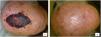 Grupo n.° 1 corresponde a localizaciones en la pierna, el cuero cabelludo, la mejilla, la sien, el pie, la frente y la región preauricular. El grupo n.° 2 corresponde a localizaciones en la pierna, la nariz, el canto interno del ojo, la mano, la zona retroauricular y el lecho ungueal.