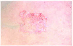 Una mujer de 77 años, con antecedentes personales de diabetes mellitus tipo 2 de 6 años de evolución, consultó para valoración de una lesión cutánea asintomática que presentaba en el tórax desde hacía aproximadamente un año. Esta lesión había crecido inicialmente, y posteriormente permaneció estable durante su evolución. La paciente refería, asimismo, la presencia desde hacía 3 meses de una erupción pruriginosa en la espalda. No se identificó relación entre la aparición de las lesiones y posibles factores desencadenantes.
