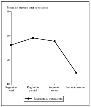 Fig. 2.--Relación entre número de sesiones y respuesta al tratamiento.