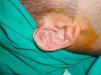 A review of the literature indicates that auricular pseudocyst recurs within 4 to 5 days in practically 100% of cases if only fluid drainage is performed.3 Subsequent intralesional injection of corticosteroids lowers the recurrence rate to 50% but involves the risk of causing irreversible deformity to the ear.4,5 Many authors have reported the use of subsequent compression using a variety of materials, ranging from pressure dressings to clothing button bolstering.6 Thermoplastic splints provide good compression adjustment and patient comfort. They are made of gypsum and are widely used in nasal and facial plastic surgery. They have also been used in dermatologic surgery to provide stability and compression after skin graft placement.7 Salgado et al.8 described their use in the surgical treatment of auricular pseudocyst. They are easy to use: after heating for a few seconds they become elastic and pliable, enabling them to be shaped and sutured. After a few minutes they cool and solidify, allowing a firm compression to be applied with a perfect fit to the area treated.