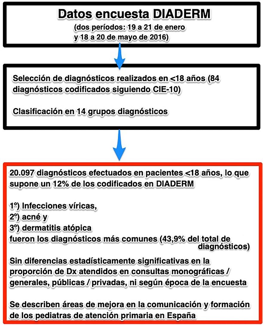 Los motivos de consulta de índole dermatológico son muy frecuentes en las consultas de pediatría de atención primaria, e igualmente muchos de los pacientes atendidos en consultas de dermatología son niños y adolescentes. A pesar de ello, faltan estudios sobre la prevalencia real de estas consultas y sus características.