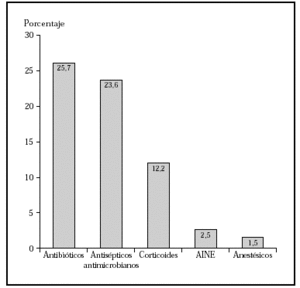 Los antibióticos fueron los alergenos que, con mayor frecuencia, justificaban la dermatitis alérgica de contacto a tratamientos tópicos y los sensibilizantes más comunes fueron la neomicina (64,3 %), gentamicina, bacitracina (12,1 %) y polimixina B (13,2 %). En el 32 % de los casos los pacientes presentaba dermatitis de estasis.