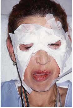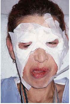 FIG. 2.--Se observan lesiones erosivas en mejillas, donde previamente nunca había presentado lesiones, que aparecieron 24 horas después de señalar a la paciente que ese área no se encontraba afectada.