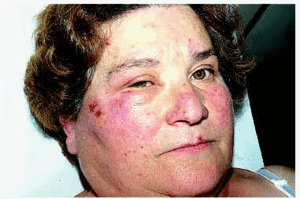 Como su nombre indica el GF afecta fundamentalmente a la cara (frente, nariz, mejillas), aunque existen casos de localización extrafacial, con afectación asimétrica de cuero cabelludo, tronco o extremidades107-109, e incluso formas diseminadas110. El granuloma facial extrafacial puede aparecer sin las lesiones típicas en la región facial108, 111, aunque esto no es lo más frecuente. Además, se han descritos varios casos de una entidad peculiar denominada «fibrosis eosinofílica angiocéntrica»112 que afecta a las mucosas nasal o laríngea y que parece representar una variante mucosa del GF, con el que en ocasiones puede aparecer asociada113.