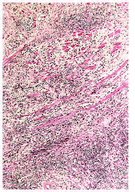 Fig. 12.--Úlcera eosinofílica: aspecto histológico. Cortesía de la doctora Emilia Fernández (Salamanca).