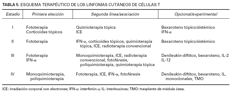 TABLA 5. ESQUEMA TERAPÉUTICO DE LOS LINFOMAS CUTÁNEOS DE CÉLULAS T