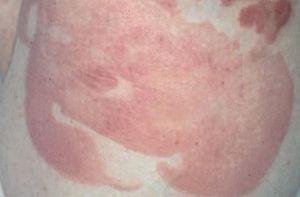 Fig. 1.—Lesiones maculares iniciales de la micosis fungoide.