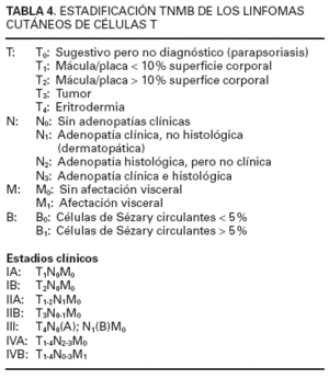 TABLA 4. ESTADIFICACIÓN TNMB DE LOS LINFOMAS CUTÁNEOS DE CÉLULAS T