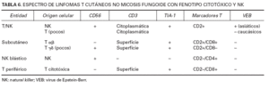 TABLA 6. ESPECTRO DE LINFOMAS T CUTÁNEOS NO MICOSIS FUNGOIDE CON FENOTIPO CITOTÓXICO Y NK