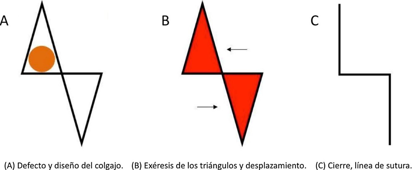 La reparación de los defectos nasales distales producidos durante la cirugía micrográfica de Mohs representa un desafío para el cirujano. Existen múltiples técnicas por las cuales se puede optar para el cierre del defecto. Presentamos 3 casos en los que se realizó el colgajo este-oeste, un colgajo de avance, de fácil diseño, que consiste en un triángulo que cubre el defecto y un segundo triángulo de descarga con sus bases en la línea de desplazamiento. Con este colgajo se obtiene un óptimo resultado estético con un movimiento mínimo de los tejidos, preservando la arquitectura nasal y con líneas de sutura bien disimuladas.