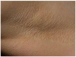 Fig. 1.--Pápulas de distribución folicular en la axila.