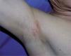 Se trata de dos varones de 74 y 80 años, que consultan por sendas placas, una en la región axilar y otra en la zona púbica de 5 meses y dos años de evolución, respectivamente, refractarias a tratamiento corticoideo tópico (figs. 1 y 2). Clínicamente son placas eritematosas, no infiltradas, de superficie nacarada y asintomáticas. A la exploración física no se evidencian otras lesiones cutáneas sospechosas ni adenopatías locorregionales, y el estudio de extensión es negativo. La biopsia cutánea muestra datos compatibles con EPE (fig. 3) con inmunotinción positiva para citoqueratinas 8, 18 y CAM 5.2, CEA y EMA, y negativas para S-100 y HMB 45. Se decide tratamiento quirúrgico mediante CMM diferida, llevándose a cabo en dos y tres estadios, respectivamente (margen de 2 cm de tejido perilesional en el primer estadio), con reconstrucción del defecto postexéresis mediante plastia de avance y cierre directo por planos sin evidenciarse recidivas locales ni a distancia 14 y 10 meses después.