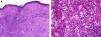 Perfil inmunohistoquímico típico de una EXOA. Expresión de CD68 en el infiltrado histiocitario (a) con expresión negativa de S100 (b). Se aprecia expresión de S100 en los melanocitos epidérmicos y en algunas células aisladas en la dermis. a) Inmunohistoquímica para CD68, ×20; b) inmunohistoquímica para S100, ×4.