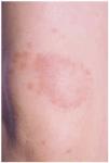 Fig. 3.--Paciente 2: lesiones eritematosas de superficie lisa y de disposición anular localizadas en glúteos.
