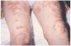 Una mujer de 50 años de edad sin antecedentes personales de interés, fue remitida para la valoración de lesiones pruriginosas, de aproximadamente un año y medio de evolución, que inicialmente se localizaban en codos y rodillas y que posteriormente se extendieron hasta afectar a la cara anterior de los muslos y al dorso de manos y pies.