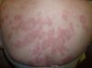 We report the case of a 74-year-old woman with a history of hypertension, diabetes mellitus, dyslipidemia, spondyloarthritis, and idiopathic thrombocytopenic purpura for which she had undergone splenectomy 5 years previously. She was being followed up by her rheumatologist for joint pain of inflammatory origin with low titers of rheumatoid factor and was taking lorazepam, ranitidine, domperidone, indapamide, AM3, and ursodeoxycholic acid. She attended our clinic with a pruritic disorder that had begun a week earlier and took the form of well-defined discretely desquamative erythematous papules on her back and, to a lesser extent, on her chest, thighs, and proximal upper arms. She had no blisters or mucosal lesions. These signs first appeared during winter, and the patient reported no previous sun exposure. Of interest, she reported starting esomeprazole and a vitamin complex (B1, B6, and B12) 3 weeks before the lesions first appeared. A biopsy specimen of one of the lesions was obtained, and the patient was prescribed mometasone cream twice daily. Esomeprazole and the vitamin supplement were withdrawn.