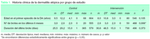 Se comparó la evolución clínica de la DA a través del número de brotes, la severidad del prurito y la gravedad con la escala IGA en los dos grupos a estudio, tras un seguimiento de 6 meses, y su asociación con el estado emocional final de los pacientes y de los progenitores participantes, observándose un descenso notable en las medias del número de brotes de la escala IGA y de la escala de severidad del prurito en ambos grupos de tratamiento (p < 0,05) y diferencias estadísticamente significativas entre los grupos en el número de brotes en la visita basal, en la escala IGA en la visita del tercer mes y en la escala de severidad del prurito en las visitas basal y del tercer mes (p < 0,05).