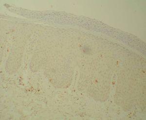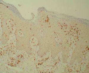 Las biopsias procedentes de las lesiones en placa fueron incluidas en formalina 10 % tamponada (WWR International). Tras la confirmación del diagnóstico de psoriasis mediante tinción con hematoxilina-eosina, se procedió a realizar tinción inmunohistoquímica mediante Bond Polymer Detection System (Vision BioSystems, Australia) para la identificación de los linfocitos T CD4+ (Novocastra Laboratories, Newcastle, Reino Unido) y CD8+ (Novocastra Laboratories, Newcastle, Reino Unido).