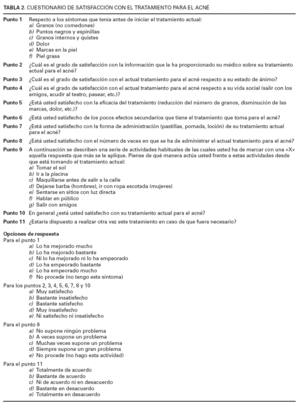 TABLA 2. CUESTIONARIO DE SATISFACCIÓN CON EL TRATAMIENTO PARA EL ACNÉ