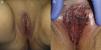 A 40-year-old woman with no past medical history of interest presented with asymptomatic genital lesions that had been noticed by her partner. It was not possible to determine how long they had been there. Physical examination showed no alterations to the external genitalia (Fig. 1A), but large areas of the inner aspects of the labia majora and minora and the vaginal introitus featured brown, gray, and black macules with irregular borders (Fig. 1B). Examination with the aid of a speculum ruled out internal lesions and the rest of the physical examination was unremarkable. Examination of 3 biopsy specimens taken from different sites ruled out malignancy and confirmed a diagnosis of extensive vulvar melanosis. Vulvar melanosis is an uncommon entity that accounts for 68% of all pigment alterations of the vulva in women of childbearing age. Its etiology is unknown but it has been described in association with pregnancy, oral contraceptive use, lichen sclerosis, and human papillomavirus infection. It typically presents as solitary or multiple dark macules with poorly defined borders and a predilection for the mucosal surfaces. A histologic study is necessary to rule out melanoma. Although vulvar melanosis does not appear to be associated with an increased risk of melanoma, periodic clinical and photographic follow-up is recommended.