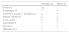 | Vocal cord 2 | 0 | 2 |