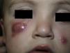 Niño sano de 2 años de edad, que consultó por 2lesiones faciales asintomáticas de 4meses de evolución. A la exploración física se observaron 2nódulos eritematovioláceos en mejilla izquierda y párpado inferior derecho, de consistencia media de 1 y 3cm de tamaño, respectivamente (fig. 1). No presentaba dolor ni fluctuación a la palpación. No se identificaron adenopatías locorregionales.