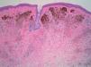 El nevus azul epiteliode fue descrito por Carney en 1996 como parte del complejo de Carney (que incluye la presencia de mixomas cutáneos y cardiacos, lentiginosis, hiperactividad endocrina, tumores testiculares y schwannomas, etc. entre otros hallazgos) aunque puede aparecer también de forma aislada5. Histológicamente se observan melanocitos intensamente pigmentados epitelioides y fusiformes, con nucleolos prominentes, a veces sin maduración en profundidad, que penetran hasta la dermis profunda. El diagnóstico diferencial histológico debe hacerse con el nevus de Spitz y con el melanocitoma6,7. El diagnóstico diferencial histológico con esta última entidad es en ocasiones difícil, si bien en el melanocitoma la ulceración ocurre más frecuentemente.