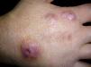 Estas infecciones podrían dividirse en dos grupos: las formas agudas, que suelen presentarse en forma de celulitis o abscesos1 que pueden evolucionar a úlceras3,9 y casos graves de fascitis necrosante10, y las formas crónicas, que en ocasiones se presentan como nódulos con un curso intermitente o lesiones granulomatosas5.