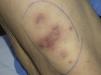 En septiembre de 2009 ingresó en el servicio de medicina interna de nuestro hospital para estudio de un episodio de hipoglucemia. Al realizar la historia clínica la paciente refería inflamación del pie derecho de un mes de evolución con un orificio fistuloso en el talón y episodios febriles 3-4 veces a la semana de meses de evolución. En la exploración física al ingreso la paciente presentaba placas y nódulos eritemato-violáceos infiltrados a la palpación de predominio en extremidades (fig. 1), motivo por el que se solicitó una interconsulta a dermatología.
