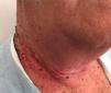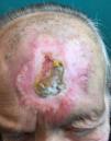 Clinical manifestations, which overlap those of acute radiodermatitis, involve an erythematous plaque that is more or less exudative and has well defined edges coinciding with the irradiated field (Fig. 2). Recall can be distinguished, however, by the fact that radiodermatitis or other lesions need not have developed previously in the irradiated field (Table 5). Depending on severity of the eruption, blisters, ulcers, hemorrhagic zones, or necrosis might develop. Signs and symptoms are more intense when the interval between the use of radiotherapy and the chemical trigger is shorter.28