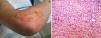 Histopathology reveals epidermal changes, including vacuolar degeneration of the basement membrane and necrotic keratinocytes as well as the presence of spongiosis that can lead to subepidermal blister formation.15 Perivascular inflammatory infiltrates, dilated blood vessels with thrombi, and dermal edema can also be observed.