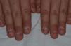 The patient was a 17-year-old male with no past personal or family history of interest. He had moderate inflammatory acne that had recurred after several cycles of treatment with minocycline and he was therefore started on treatment with isotretinoin at a dose of 40mg/d. The clinical course was unremarkable, with progressive improvement in his acne, minimal xerotic changes in the skin, and mild cheilitis. Laboratory tests showed no relevant alterations. During the third month of follow-up, the patient asked us to look at what he considered to be fragile nails, which he had first noticed a month after starting treatment. He denied trauma, manual labor, concurrent pathologic disorders, or other drugs. He also denied any previous nail changes or any past personal or familial history of psoriasis.