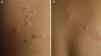 | Distribución | Agrupados (placa en ES)+dispersos (espalda y escote) | Agrupados (placa zona pectoral izq.) | Agrupados (placa zona pectoral y cuello+alguna dispersa (cuello) | Agrupados (cuello y zona pectoral izq.)+dispersas (cuello) | Agrupadas (zona pectoral der.) | Agrupados (placa laterocervical der.)+dispersos (tronco y EE) |