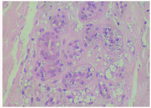 De los tipos de respuesta descritos por Mehregan1 frente a la presencia de sustancias anormales en la dermis, las partículas más pequeñas serían eliminadas a través de canales epidérmicos angostos, con poco daño de estructuras adyacentes. Mehregan denominó a este fenómeno como eliminación transepidérmica y definió a su vez tres tipos de transmigración, de acuerdo con el tamaño de la sustancia eliminada y al grado de reacción de la epidermis1,2.