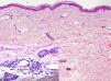HistopatologíaEl estudio histológico mostró estructuras vasculares dilatadas en el plexo capilar superficial con un infiltrado inflamatorio en la periferia donde predominaban los mastocitos (fig. 2). Estas células eran positivas para la tinción de triptasa (fig. 3).