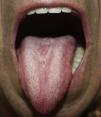 DiscussionMRG is uncommon and probably underdiagnosed, and for many years was considered to be a malformation.1 It manifests as a clearly defined, rhomboid-shaped, atrophic or globular erythematous plaque, which appears on the midline of the dorsum of the tongue. It most commonly affects men, smokers, and diabetics, and the response to antifungal therapy is variable. Several hypotheses have been proposed to explain why the infection in MRG manifests in such a localized manner. According to Whitaker and coworkers,2 the affected region lies on the hard palate during deglutition, phonation, and rest, thus reducing its exposure to the the action of the saliva. Other authors propose that blood flow in this region is reduced compared with the rest of the tongue. In some cases an opposing erythematous plaque, or “kissing lesion”, is observed on the hard palate; according to Brown and colleagues,3 this may be a marker of associated immunosuppression.