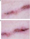 Destacamos la utilidad de la dermatoscopia para el diagnóstico de un carcinoma basocelular lineal para excluir otras enfermedades que también pueden presentar una morfología lineal4, así como para delimitar con una mayor precisión la extensión del tumor, pues se ha descrito que pueden tener mayor extensión subclínica de la esperada3,6. Además, puede servir para orientar el tipo histológico antes de disponer de resultados anatomopatológicos y clasificarlo en bajo o alto riesgo, lo que permitirá elegir la técnica quirúrgica y los márgenes más adecuados2,6. El subtipo histológico más frecuente del carcinoma basocelular lineal es el nodular3–6, si bien en ocasiones se puede asociar a otros más agresivos como el infiltrativo o el morfeiforme3,4. En estudios retrospectivos y series de casos la cirugía de Mohs es la más empleada para el tratamiento del carcinoma basocelular lineal3,4,6, si bien otros autores también obtuvieron unos resultados buenos con la cirugía convencional, como en nuestro caso, y recomiendan reservar la cirugía de Mohs para los subtipos histológicos agresivos o localizados en las áreas de alto o medio riesgo (área H o M)6.