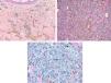 Histologically we observed one intensely pigmented lesion, localized in the dermis and subcutaneous tissue, with no intraepidermal component or connection to the epidermis, which was flattened and showed some hyperkeratosis. The lesion itself showed a pattern of expanding growth with various lobes (Fig. 2a). The central area consisted of numerous melanophages (Fig. 3a), while the periphery and deep lesion area were composed of melanocytic cells with an epithelioid or slightly fusocellular nature, moderate cytologic atypia and pleomorphism (Fig. 3b). Those cells were of medium and large size, with slightly eosinophilic cytoplasm and vesicular nuclei, most of them with a central nucleolus or smaller sized nucleoli. We counted up to four mitoses per HPF in the proliferation areas, some of them showing atypia (Fig. 3c). A scarce inflammatory component – consisting of lymphocytes interspersed with tumor cells – was observed. We did not observe any foci of necrosis or images of lymphovascular or perineural invasion. An immunohistochemistry analysis using red chromogen revealed that the melanocytic cells were only found in the deep and peripheral part of the lesion, while the rest of the cells corresponded entirely to melanophages (Fig. 2b). With these findings, the diagnosis of malignant blue nevus (MBN) was established.