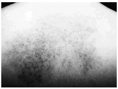 Su distribución anatómica varía enormemente, existiendo cierta predisposición por la zona dorsal, y en concreto la región interescapular, como sucede con nuestra paciente. Otras zonas afectadas son la mano9, nalgas4 o extremidades inferiores10. También existen casos generalizados que afectan prácticamente toda la superficie corporal7, incluso mucosa oral y ocular11.