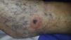Presentamos una mujer de 75 años de edad con antecedente de insuficiencia venosa en los miembros inferiores. Consultó por una lesión localizada en el tobillo izquierdo, de un año de evolución, que en la última semana había presentado eritema y prurito. Al examen físico se observaba una lesión ligeramente sobreelevada, de color azul oscuro y marrón, asimétrica, de límites mal definidos y 1cm de diámetro; se encontraba rodeada por un halo de eritema y descamación, y asentaba sobre un terreno de edema y dilataciones varicosas (fig. 1). Los diagnósticos presuntivos planteados fueron lesión equimótica asociada a dermatitis por estasis venosa vs. lesión melanocítica con halo de eccema (fenómeno de Meyerson).