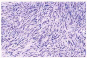 Una paciente de 43 años, fumadora de 20 cigarrillos al día, fue sometida en febrero de 2000 a una histerectomía total con anexectomía derecha por síntomas de dolor abdominal y metrorragias producidas por múltiples miomas. El estudio histopatológico de la pieza quirúrgica demostró, además de múltiples y pequeños leiomiomas, un leiomiosarcoma uterino de 8 cm de diámetro máximo que no sobrepasaba la serosa.