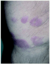 Fig. 1.--Lesiones eritematoedematosas localizadas en miembro inferior derecho.
