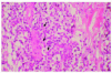 Fig. 3.--Detalle histológico cutáneo. Destaca la aparición de células de núcleo vesiculoso con nucléolo prominente (flechas). (Hematoxilina-eosina, x400.)