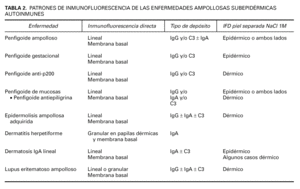 Los hallazgos de inmunofluorescencia directa en cada enfermedad se resumen en la tabla 2.